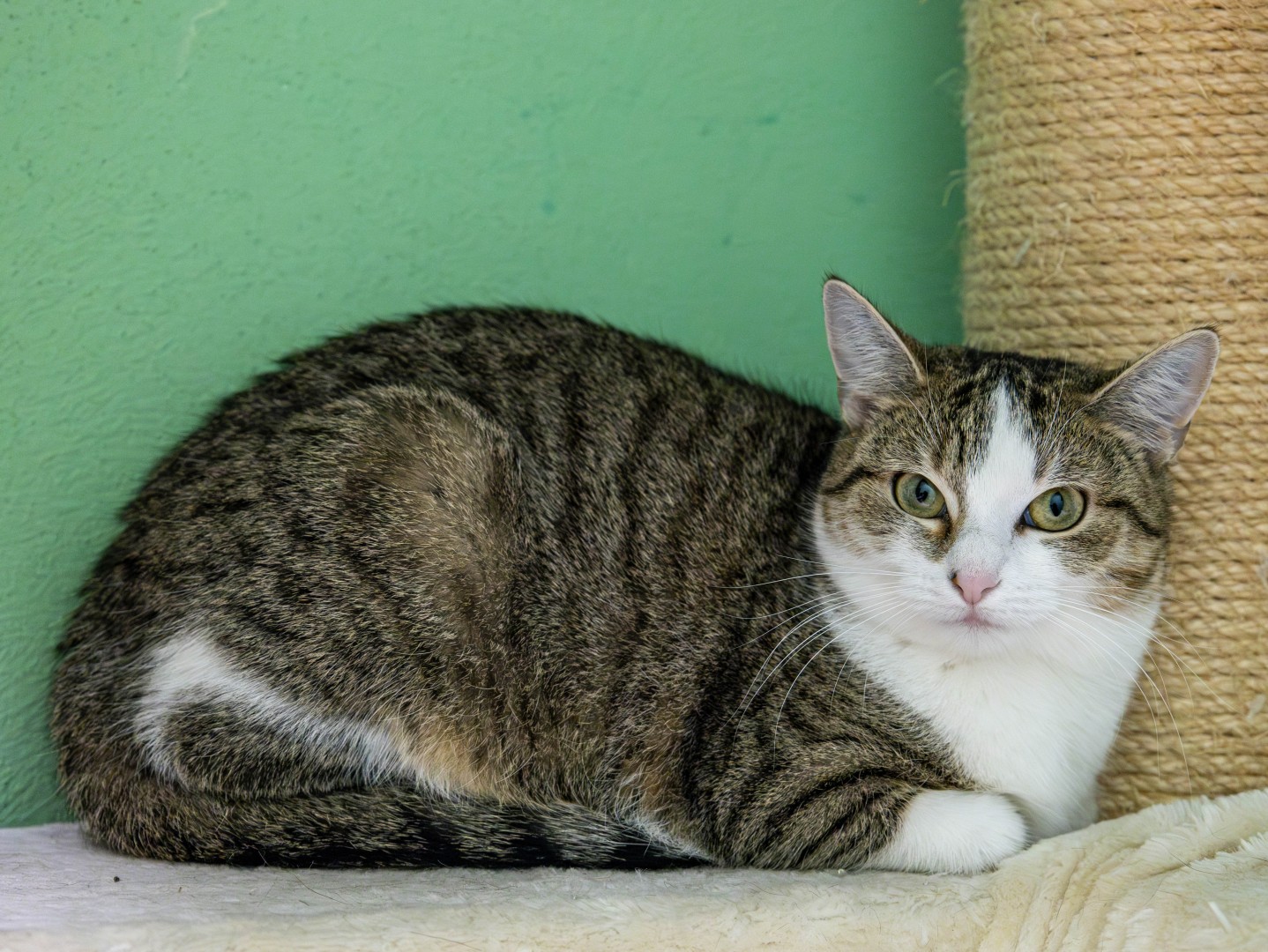 Cola verbrachte ihre ersten Lebensmonate ohne engen Kontakt zu Menschen und ist daher auch noch sehr schüchtern. Allerdings hat sie sich im Tierheim richtig gut gemacht und wird langsam zutraulicher und neugieriger. Eine große Schmusekatze ist sie allerdings nicht. Sie spielt gern mit der Angel und mit viel Geduld fasst sie soweit Vertrauen, dass sie auch vorsichtig in die Nähe von Menschen legt und neugierig schnuppert. Sie wird zusammen mit Pepi vermittelt, denn die beiden geben einander Halt und Geborgenheit.